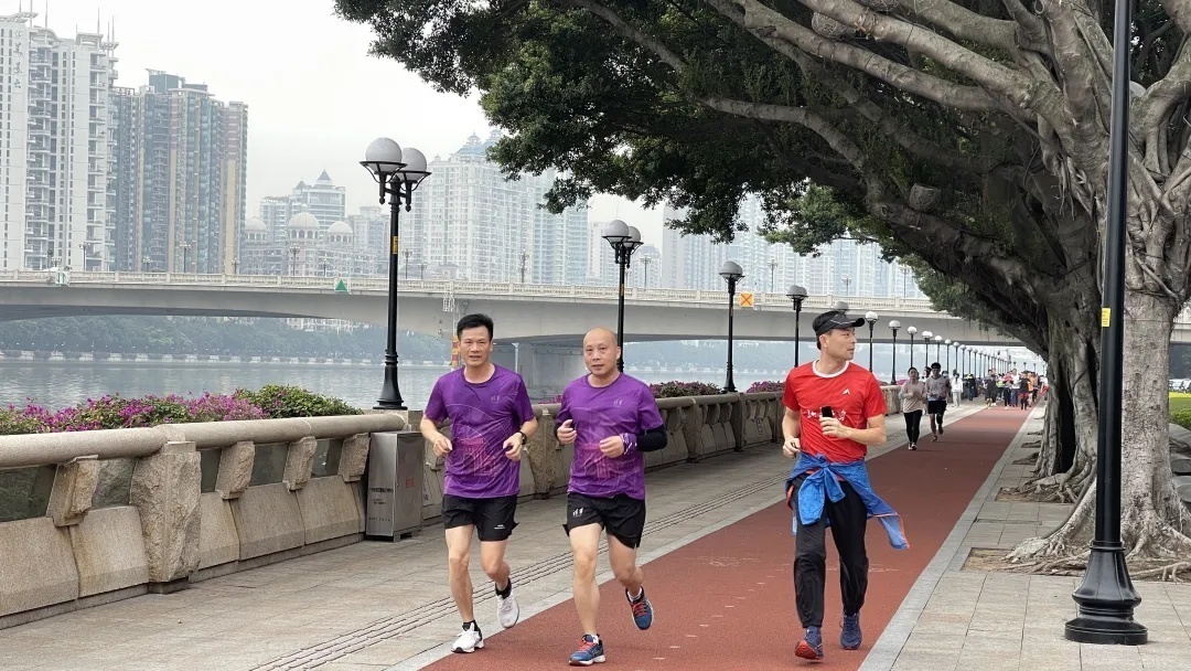 1月1日,广州二沙岛一早很多人在跑步。
