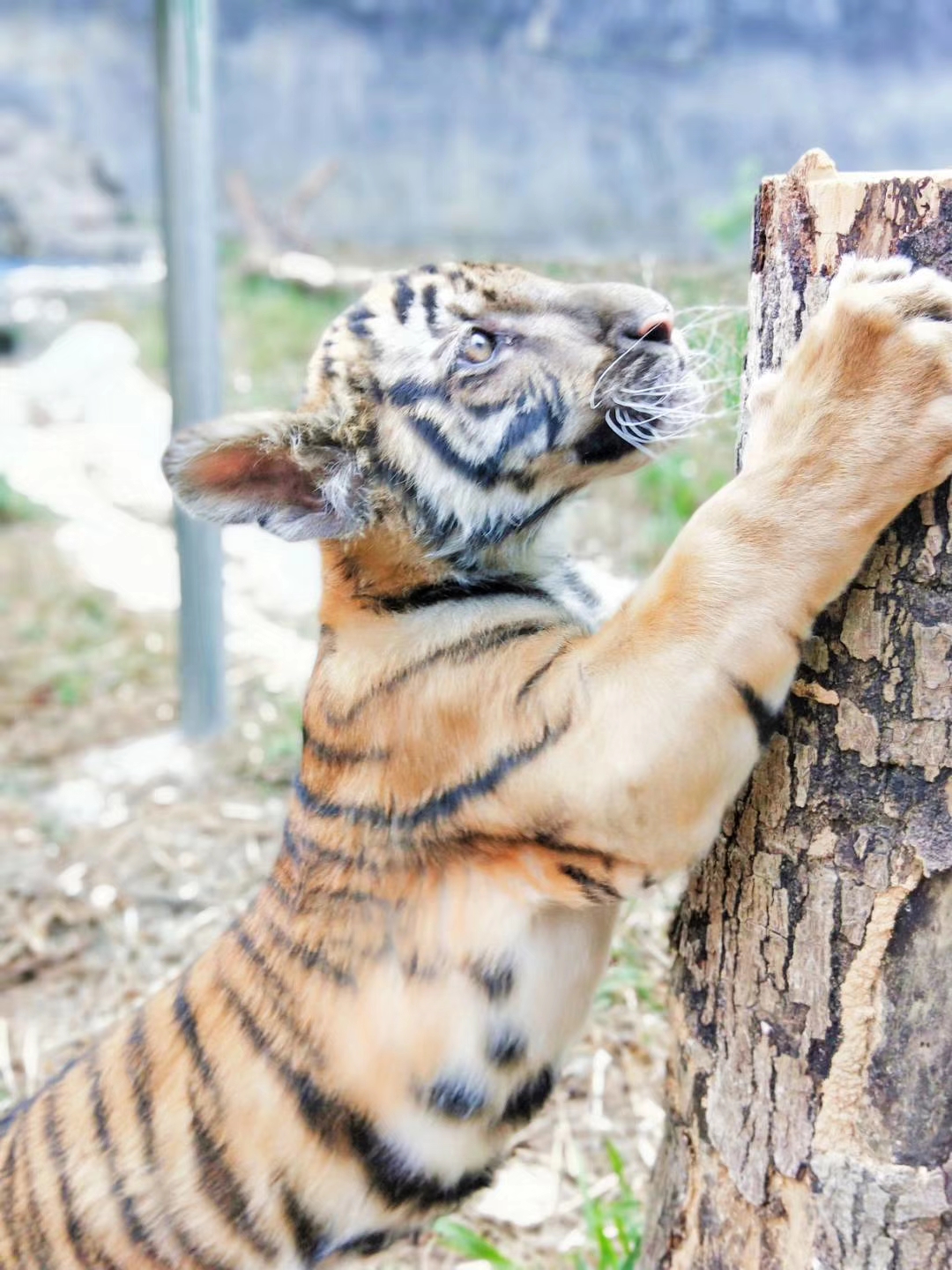 近年来,广东粤北华南虎省级自然保护区管理处韶关华南虎繁育研究基地经采取一系列科学繁殖和人工育幼措施,在2021年3月和9月迎来“圆圆”和“庆庆”两只雌性虎宝宝的出生后,又有两只华南虎宝宝出生,实现了一年内三胎高产记录,幼崽成活率远超全国平均水平,为华南虎种群发展做出了卓越的贡献。