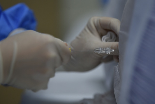 针尖进入身体,杜先生紧了紧拳头。“放松一点,正常呼吸,肚子别紧张。”医护人员继续耐心地引导。