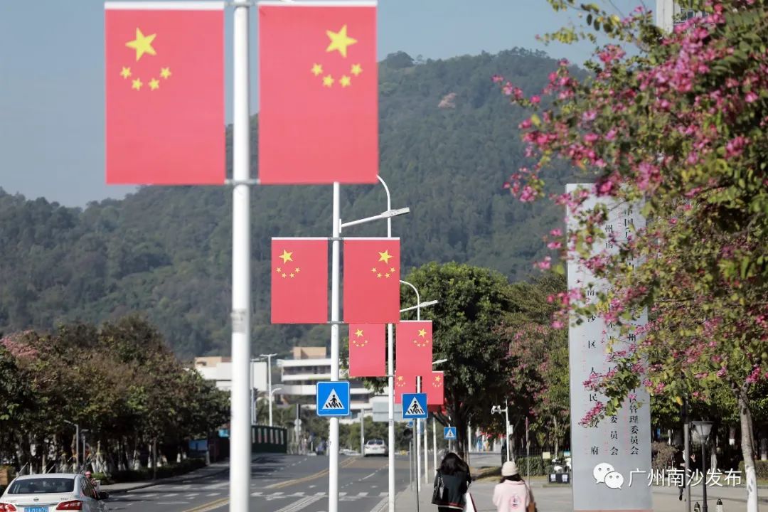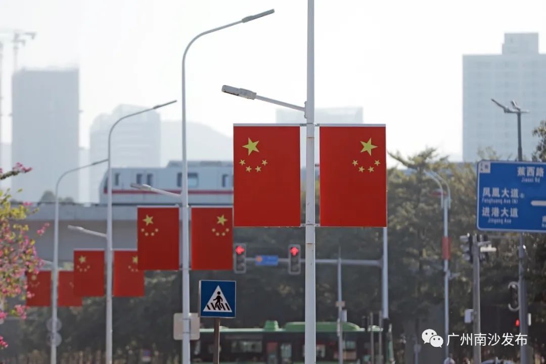 小南巡城发现,为庆祝到来的2022年,在南沙区进港大道、凤凰大道、市南大道、南府路等路段以及各镇街中心区域,一面面五星红旗用最亮的“中国红”,向祖国真情告白!