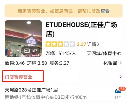 集团旗下品牌之一伊蒂之屋(Etude House),在2021年3月就已经彻底关闭了中国市场所有的线下门店(点击查看详情→),仅保留线下美妆集合点“调色师”渠道,其他都转为线上经营。据其官网数据,伊蒂之屋于2013年进入中国市场,巅峰时期也曾在北京、上海、广州、武汉等25个城市开设了58家品牌直营店。