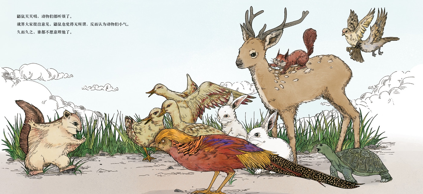 《爱炫耀的鼯鼠》改编自《南村辍耕录》,讲述了一只虚荣的鼯鼠的寓言故事。