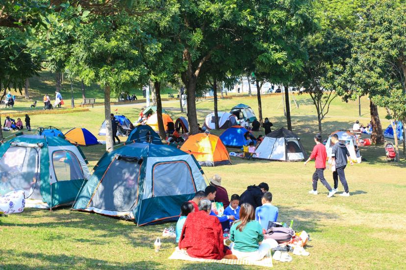 假期三天,天气晴好,在深圳中心公园,许多市民支着帐篷、带着野餐,一家大小在草地上享受惬意的休闲时光。近期,深圳公园开展帐篷区试点,全市22家公园专门划定了帐篷区,给市民创造宜居宜游的美好休憩空间。