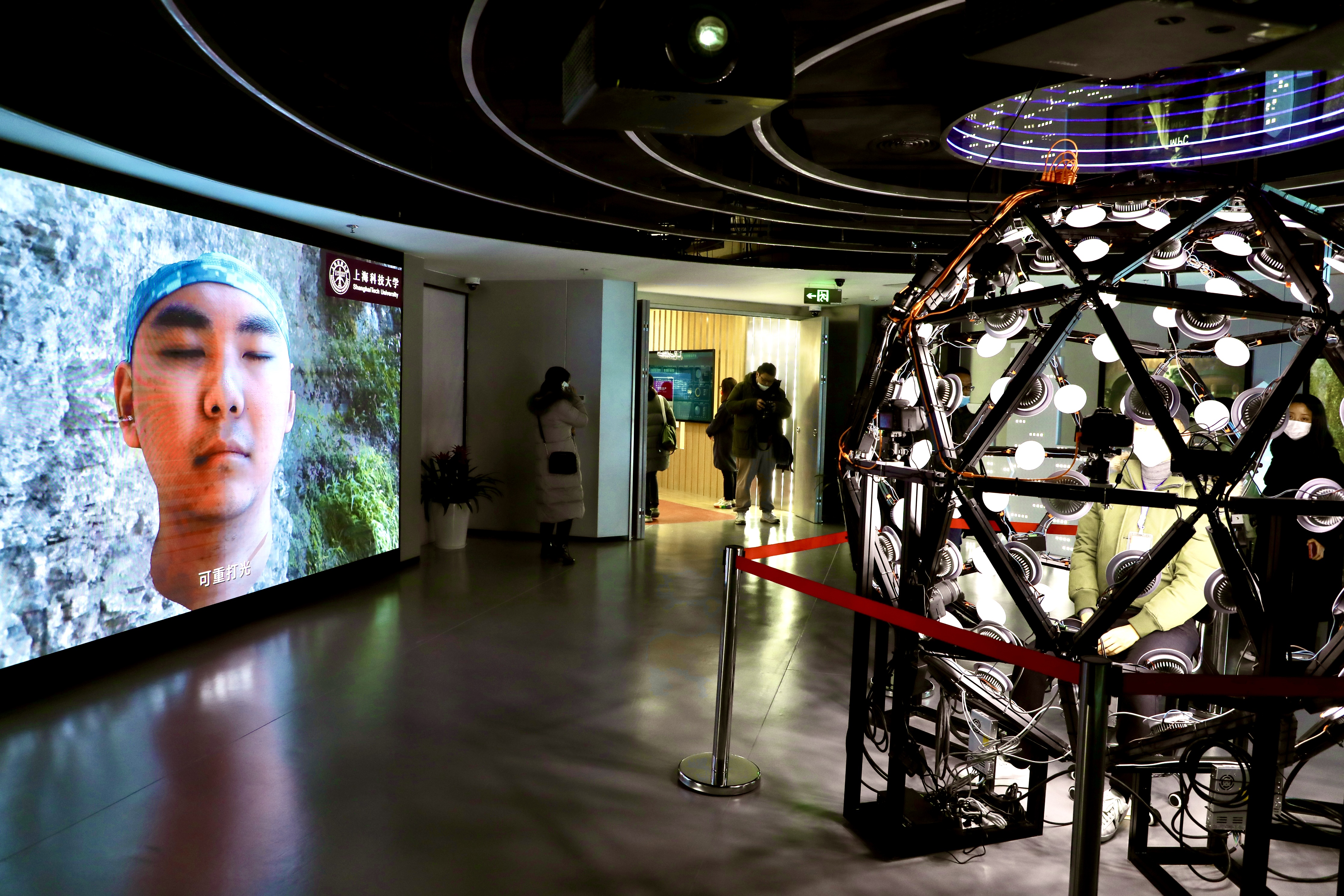 走进多媒体技术演绎区,通过长宁地图的浮雕投影,裸眼3D沉浸式体验,展示3320发展战略内容要义,描绘数字经济发展蓝图。此外,通过互动模块、AI互动、大数据看板,让身处AI社区的您,感受数字化转型带给养老、教育和健康的新变化。在未来体验区里引入当下最热“元宇宙”概念,结合智能科技互动产品体验,可以通过4D扫描设备,捕捉人脸动态,可以打造出“元宇宙”里的独特的虚拟形象。第三方企业展区互动体验区里,市民还可以体验AI语音同传系统,智能写诗,模拟果园,无影游戏等。