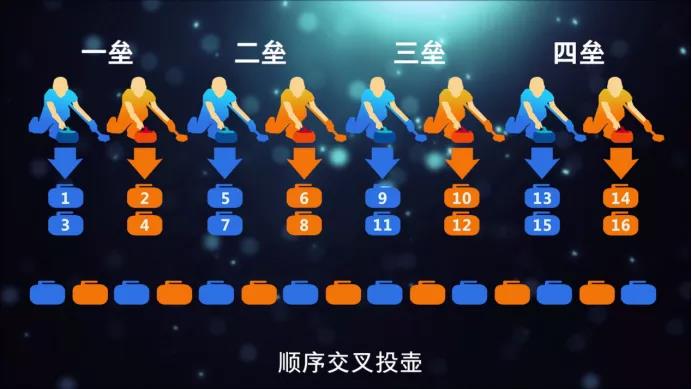 ■ 比赛时双方各4人登场,分一垒、二垒、三垒和四垒,顺序交叉投壶,10局比赛,每局中冰壶最接近圆心的一方得分,得分多者获胜。