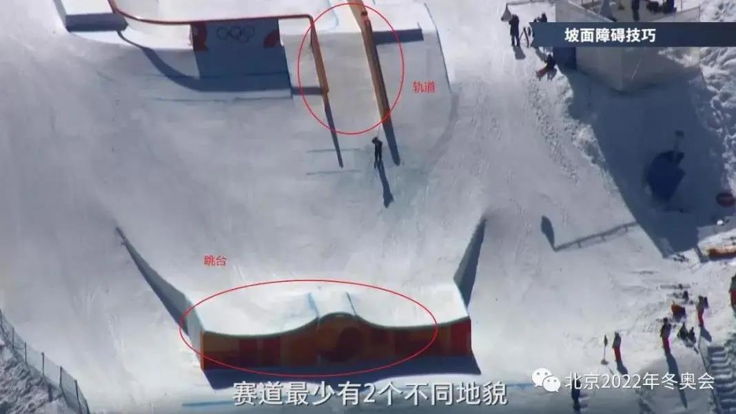 运动员从一个近50米高的斜坡上下滑,顺滑、倒滑都可以选择,然后在斜坡的尽头腾跃,完成空翻、转体、抓板等技术动作组合。