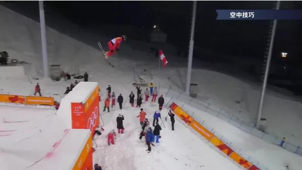 运动员用自由式滑雪技巧完成空翻、转体、抓板等技术动作体。