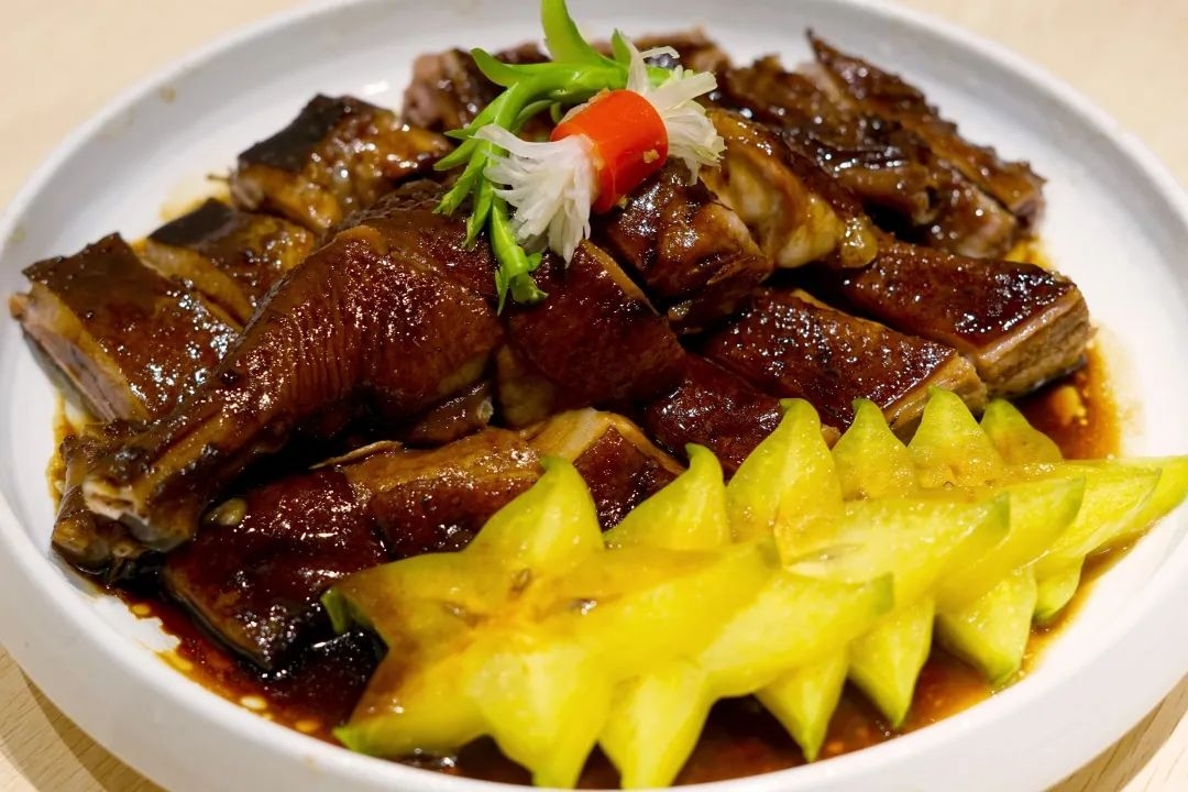 焖煮后浓稠的酱汁咸香开胃,十分下饭。一口鹅肉、一口杨桃、一口酱香米饭,甚是满足,这道菜还获评2021广州国际美食节“岭南特金奖名菜”!