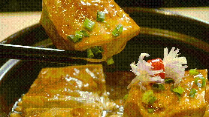 店内的龙窝酿豆腐也成了一大招牌菜。水豆腐酿入猪肉馅后煎至金黄,再加入高汤煮至入味,豆腐鲜香嫩滑、肉软嫩浓香。