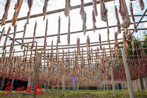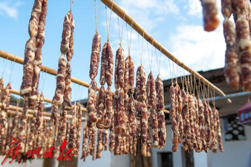 冬日正是腊味最佳赏味时。吕田腊味是广州从化一道传统农家美食,其凭借咸香风味名声在外。吕田镇位于广州最北部,镇内山高林密,昼夜温差大,适合晒腊味。