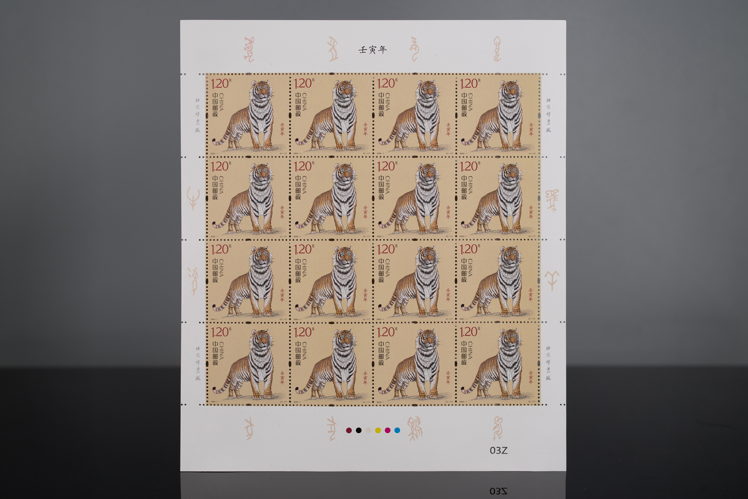 该套邮票使用了胶印雕刻联合印刷方式呈现,由原艺珊、刘明慧雕刻,北京邮票厂有限公司印制。该套邮票小本票由王虎鸣设计,小本票画面设计匠心独运,通过延伸形神兼具的生肖虎形象,精彩呈现了“国运昌隆”与“虎蕴吉祥”的画面主题。