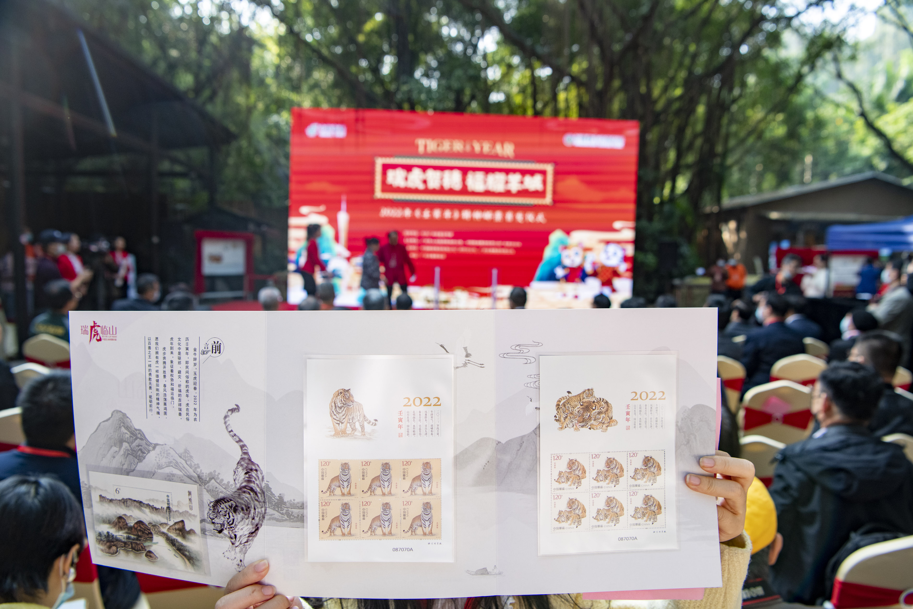 1月5日上午,《壬寅年》特种邮票首发活动在长隆野生动物世界—百虎山举行。本次活动特意在长隆百虎山举行,让到场的观众更加身临其境地一睹邮票上老虎威严而又灵动的形象。