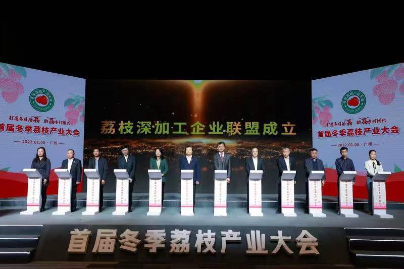 2022年北京冬奥会倒计时中,看冬奥、品荔枝也将成为新时尚。2022年1月5日,由广东省农业农村厅主办、广药集团等承办的首届冬季荔枝产业大会在广州召开。广药集团研发的荔枝真果汁系列、荔枝气泡水、荔枝燕窝、荔枝花胶等18款荔枝深加工产品——“荔小吉”系列产品上市。大会公布了荔枝美颜功效的最新科研成果,现场成立了荔枝深加工企业联盟,并举办了“共同发展荔枝产业合作项目”签约仪式,广药王老吉将与广州从化、湛江、茂名、惠州、阳江等地荔枝产业加强合作,共同擦亮广东荔枝品牌,助力广东乡村振兴。