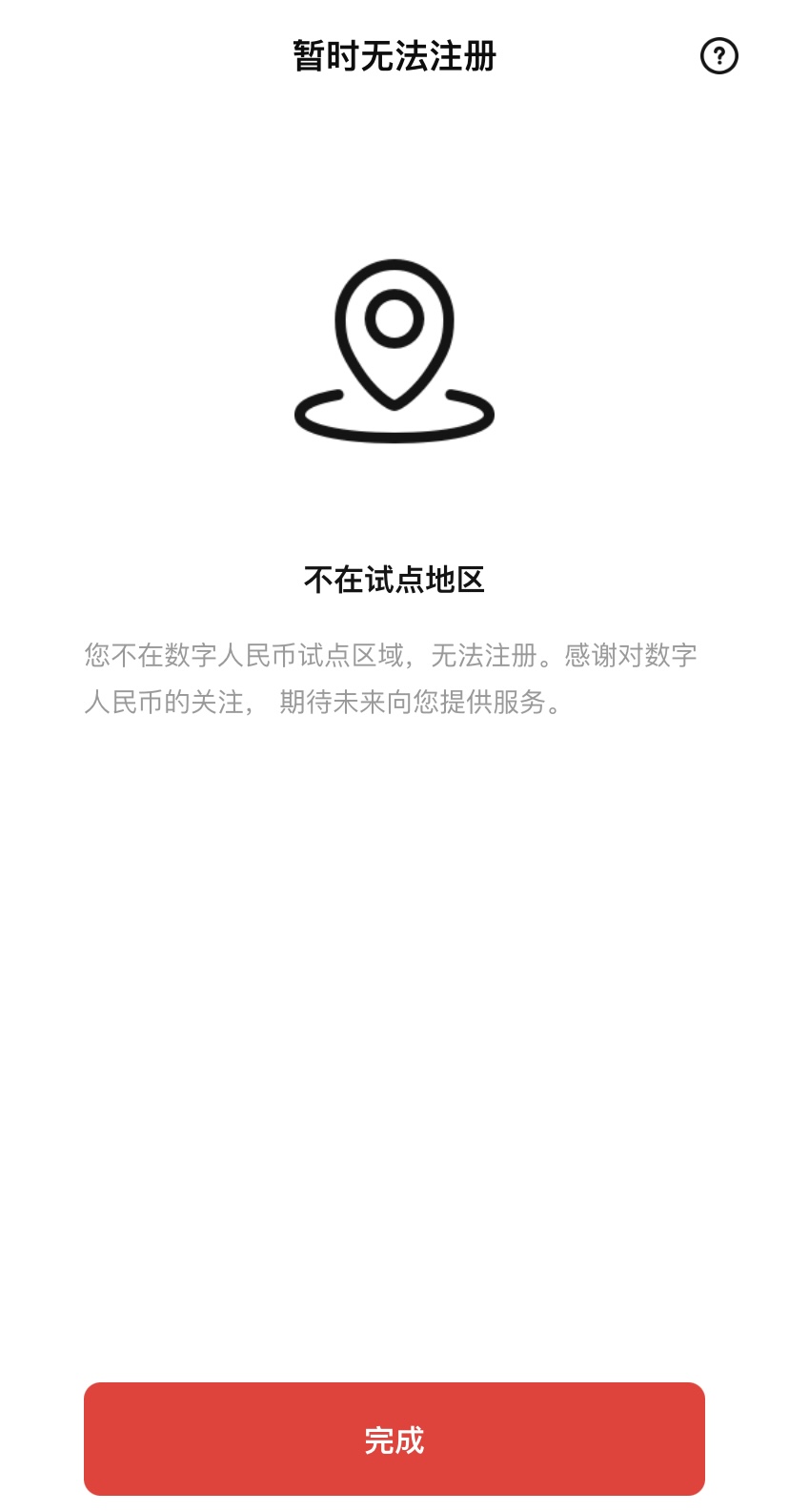 记者在广州亲测发现,虽然可以下载该App,但点击新用户注册时,系统提示“不在数字人民币试点区域,无法注册”。