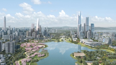 (上图为香蜜湖新金融中心规划效果图,其北区将高质量建设深圳国际交流中心,形成山海绿廊间的国际交往新平台。)