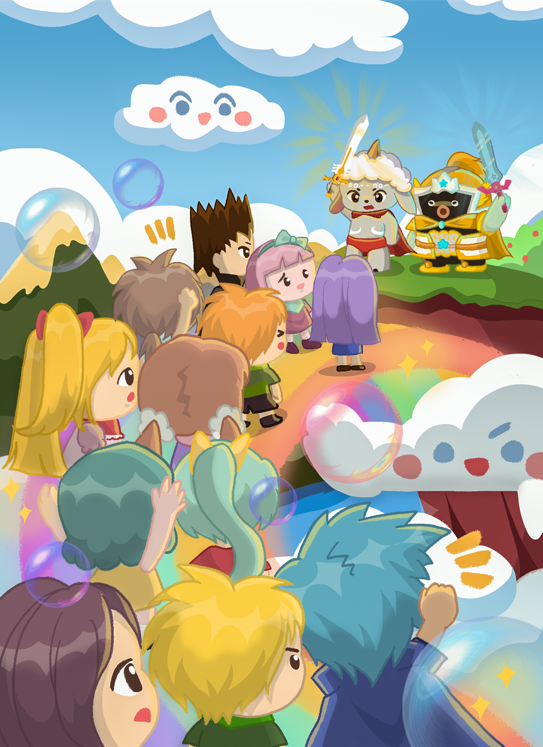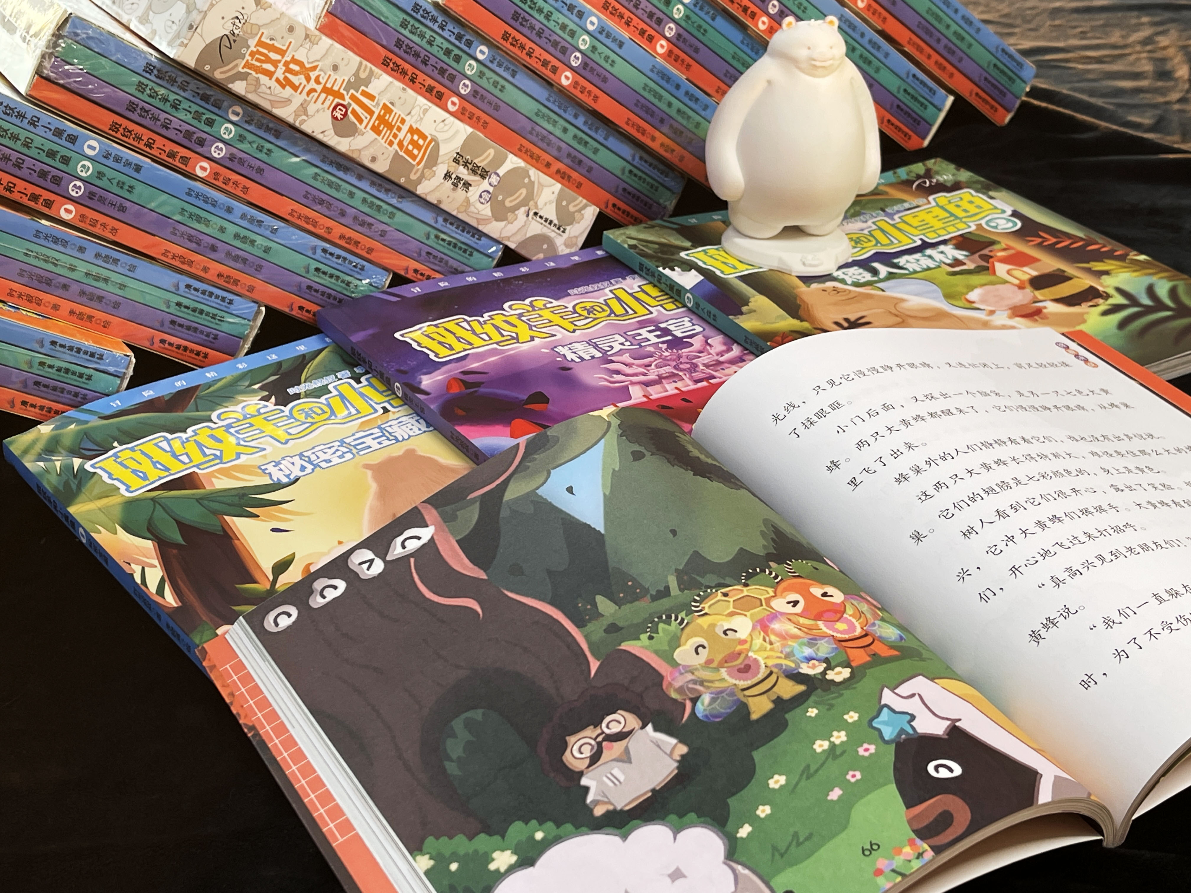 他不但讲过斑纹羊和小黑鱼的故事,还讲过寻找独角兽的故事,讲过拖板大侠、时光猫和时光狗、蘑菇勇士……
