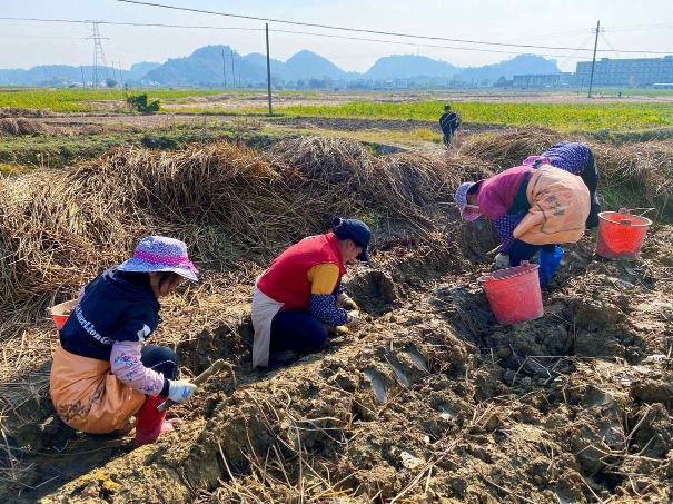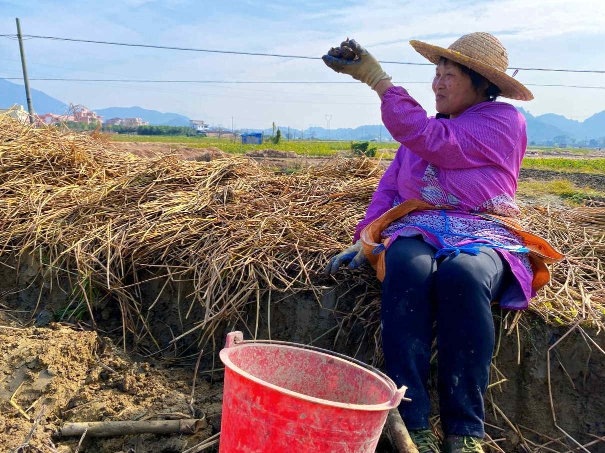 小寒时节,广州日报记者走进乐昌市北乡镇,迎面而来的是一片忙碌的景象。挖掘机在农田里频繁的挖采着,村民们正在地里热火朝天地收割着,部分村民拿着手机在拍视频,时不时传来“老乡老乡,你看我们今天开挖了啊!我等下发个视频给你们去,要是大个的你就给高一点的价钱啊!”“一二三,加油干!”这样的声音。原来这是乐昌北乡村民在收割的乐昌马蹄!