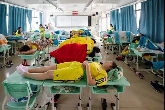 第四个是积极创造条件实现学生午休“平躺睡”。
