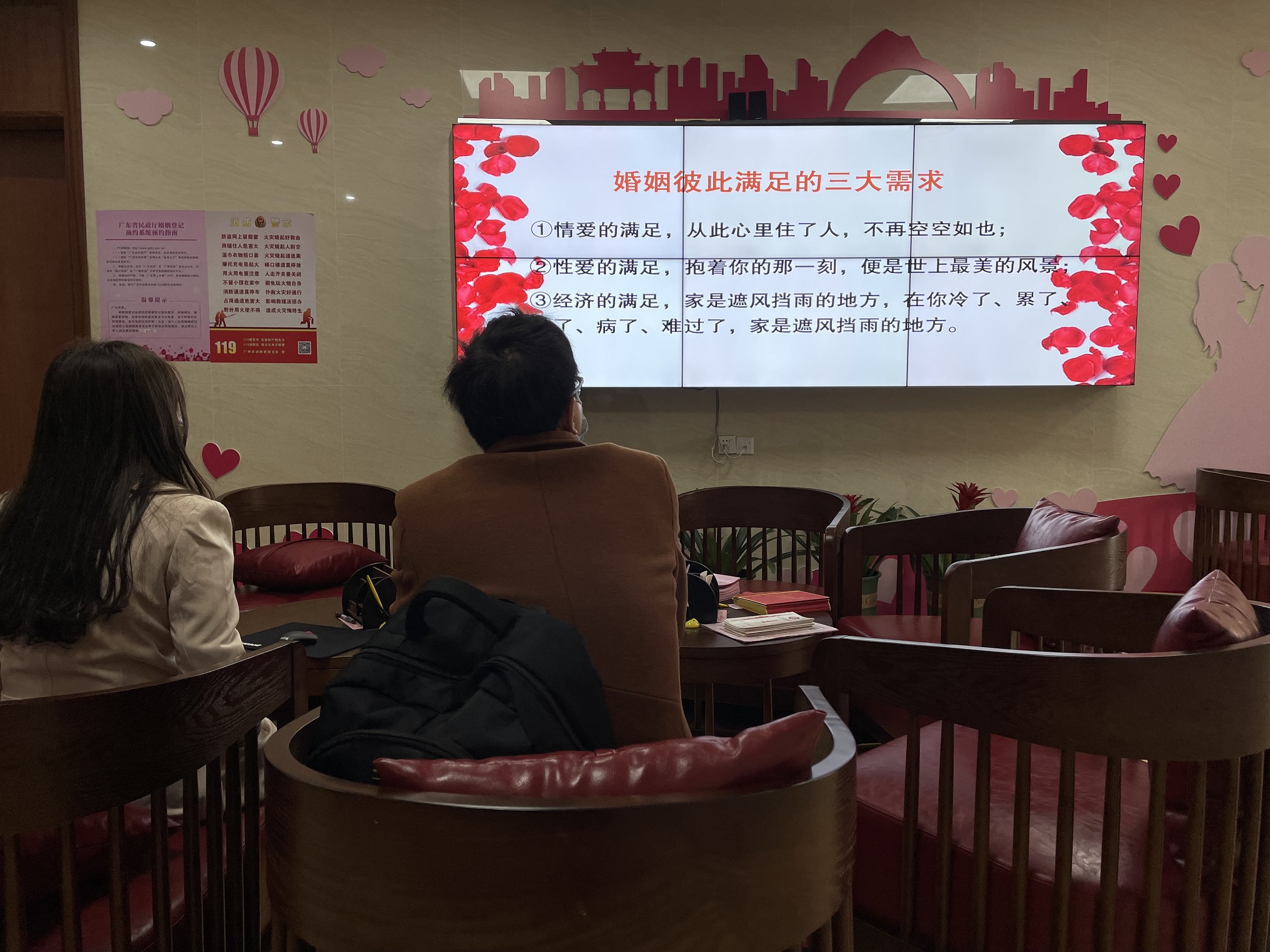 记者走访过程中,遇到了在南沙区民政局婚姻登记处办结婚登记并参加了幸福课堂等活动的林先生和惠女士,他们表示,新年新婚第一堂课让他们加深了对双方的了解,学习到婚后身份转变、家庭责任、沟通技巧等多方面的知识,“这堂课非常及时,也非常实用”。