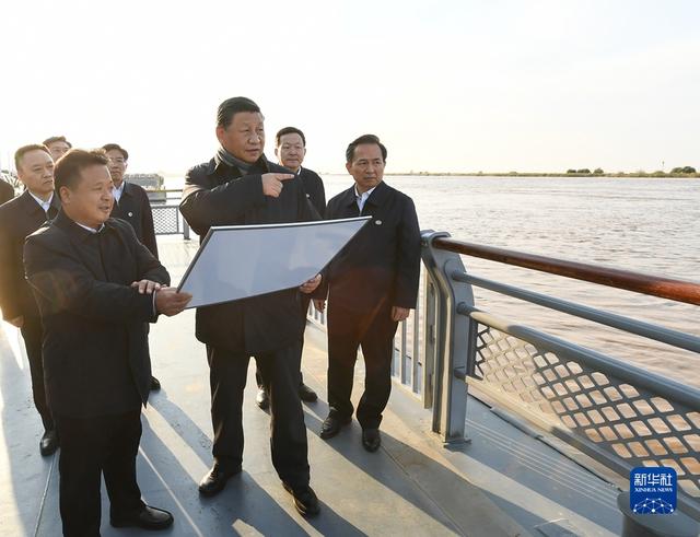 2021年10月22日下午,中共中央总书记、国家主席、中央军委主席习近平在山东省济南市主持召开深入推动黄河流域生态保护和高质量发展座谈会并发表重要讲话。这是座谈会前,习近平20日下午在东营市黄河入海口考察。
