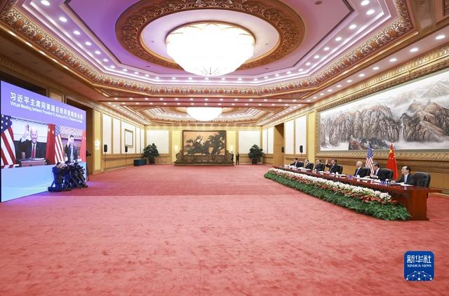 2021年11月16日上午,国家主席习近平在北京同美国总统拜登举行视频会晤。