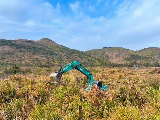 尤其是在2021年冬至至今以来,复垦丢荒耕地的力度不断加大,近段时间,每天都有四五台钩机、拖拉机在荒田地上清除又高又粗又密的芒秆、茅草以及翻土,原来杂草丛生的荒地,经过机械施工,变成了可复耕复种的田地。