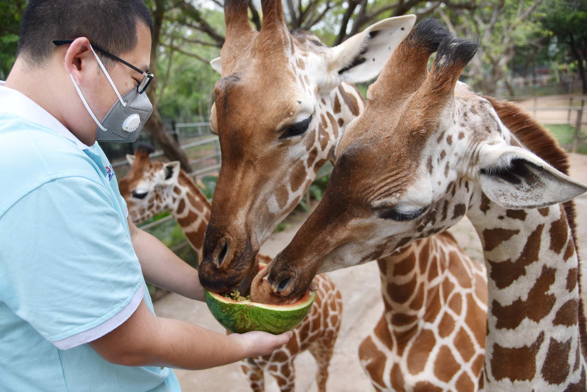 长颈鹿吃的“腊八蒜”,用西瓜镂空成“大碗”,以大蒜为主料,配上生姜、地瓜、苹果、苜蓿颗粒等食物。动物园饲养员端着一大盆“腊八蒜”送到长颈鹿面前,嗅到美食味道的长颈鹿弯下长长的脖子,津津有味地吃了起来。“大蒜和生姜都能刺激长颈鹿的肠胃,促进食欲,而且还能解表散寒,增加其免疫力。”动物园饲养员说。
