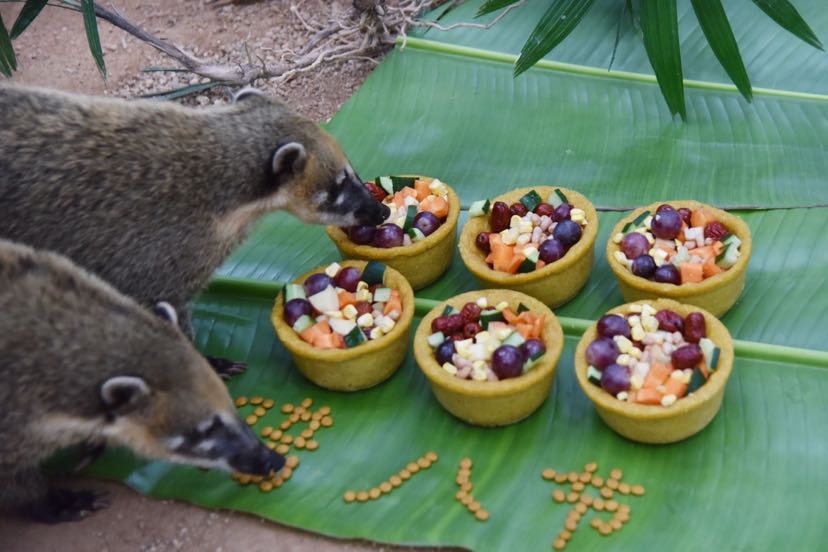动物园工作人员介绍,动物吃的“腊八大餐”,是根据各种动物日常食谱,适当调整了食物种类和比例,并改变食物的造型,就连装食物的“器皿”也是采用食物制作而成,同样可以食用,让动物们有新奇感,提升它们的进食乐趣。