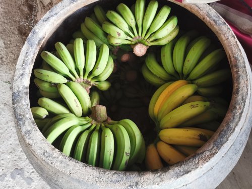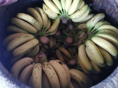 刘庄主介绍,一般来说,完成烟熏后的香蕉放置三五天会逐渐变黄、生麻黑点(即“梅花点”),此时的香蕉便是口味最佳的时候。从采摘下来,到香蕉成熟售卖,刘庄主的“香火蕉”耗时二十多天。“十多年了我都是这么做的,这种方法吃得比较放心。”记者在农庄内看到,十余只陶瓷缸摆放在庭院中,每一缸都放置有待熟或已成熟的香蕉。刘先生告诉记者,陶瓷缸也需要定期洗净晾晒,这样一缸一缸制作耗费时间较长。