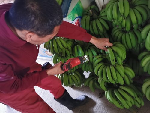 刘庄主告诉记者,十多年前,他从当地村民处盘下了荔枝文化公园内的部分田地种植荔枝和蔬菜瓜果,还在别处种植香蕉。由于自小于农村生长,对祖辈采用的香薰催熟香蕉的方法了然于胸,于是种植香蕉后,他也坚持使用香薰法制作“香火蕉”。由于香蕉熟透后易招致蚊虫且不易保存和运输,所以,一般来说,香蕉都是提前采摘并人工催熟才上市售卖。目前,市面上一般使用乙烯利催熟剂,按照一定的配比稀释后喷洒于香蕉表面或者直接浸泡过水,利用释放出的乙烯将香蕉催熟。这一方法较为方便且催熟时间较短。