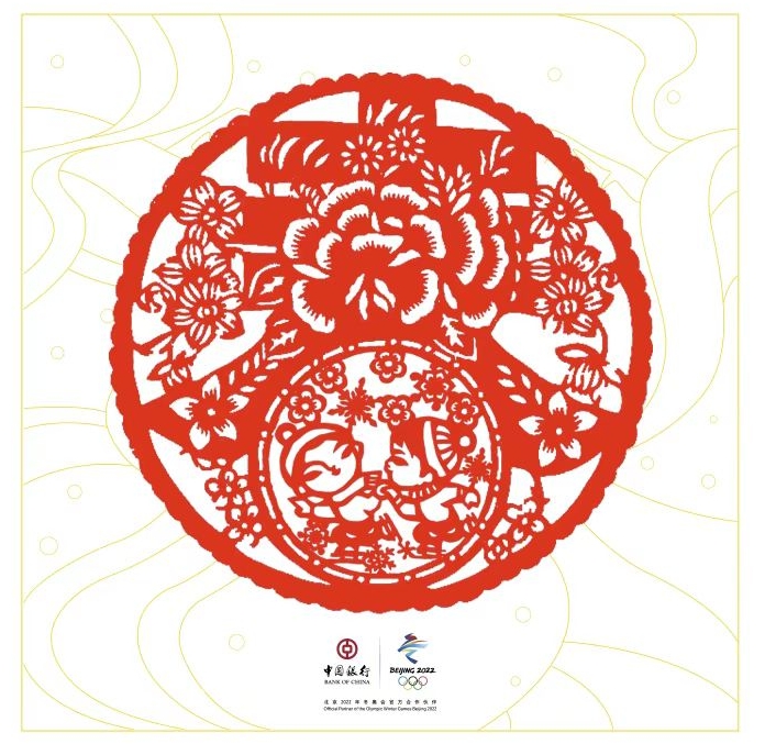 李竹梅冬奥剪纸特许作品:《万福迎春》