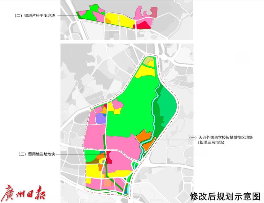本次获批的控制性详细规划包括三个地块,地块一位于华南植物园南侧、华南快速路西侧。地块二位于岗旺村西侧、华南快速路东侧。地块三位于长湴公园东南侧。