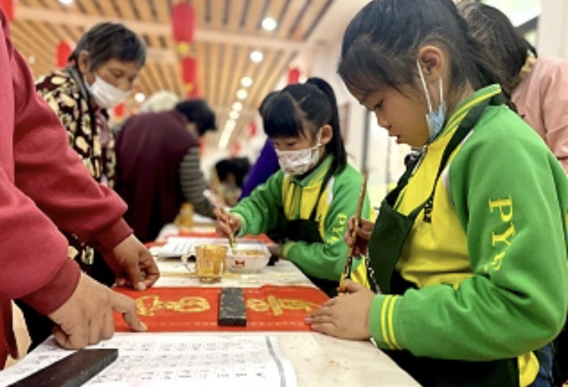 不多时,满载祝福的200多对春联和150余张“福”字被赠予到村民手中,让人不仅感受到了浓浓的年味,更看到了师生笔下传统文化的魅力。