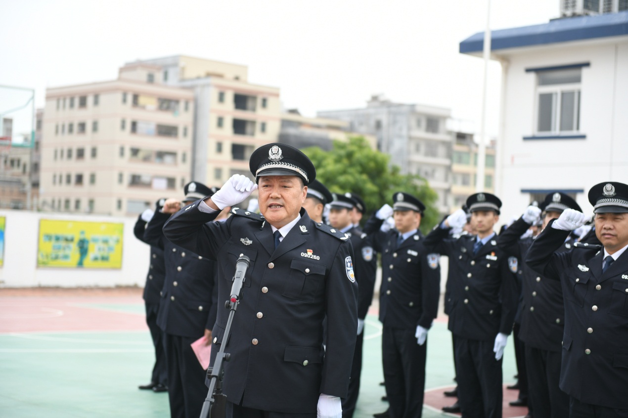 “我是中国人民警察,我宣誓:坚决拥护中国共产党的绝对领导……”在党委书记、处长侯居东的领誓下,全体民警高举右拳,郑重宣誓,高亢激昂的中国人民警察誓词之声久久回荡,震撼人心,充分展示了惠铁警队护卫粤东铁路平安的坚强决心、坚定意志。