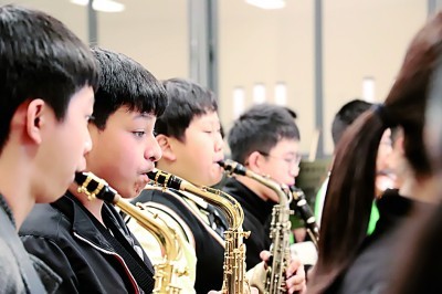 日前,深圳香港培僑書院龍華信義學校的學生在選修課上練習管弦樂器。(深圳香港培僑書院龍華信義學校供圖)