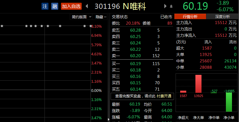11日,唯科科技正式登陆A股创业板,但开盘破发,收盘下跌6.07%,成为今年第二只破发新股,也是创业板第一只上市首日就破发的新股。