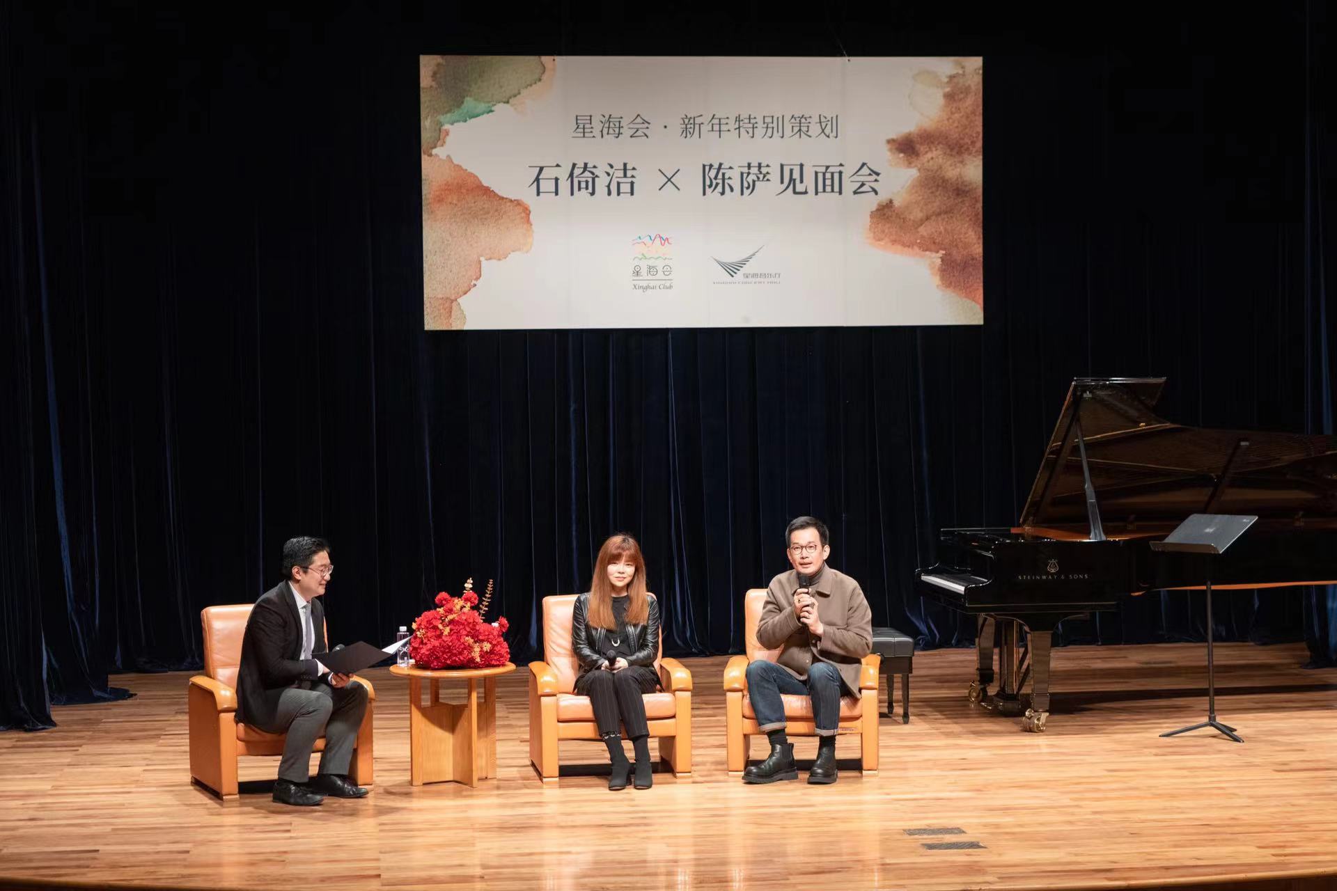 “我们都是有情怀的人,所以有了这次合作。”1月10日晚,石倚洁和陈萨做客星海会,分享了举办中国艺术歌曲音乐会的初衷、两人台前幕后合作过程中的趣事,以及两人对作品的见解及处理方式等。“唱中国艺术歌曲,我的眼前有一幅水墨画,我在想着怎么去展开它。”石倚洁说。