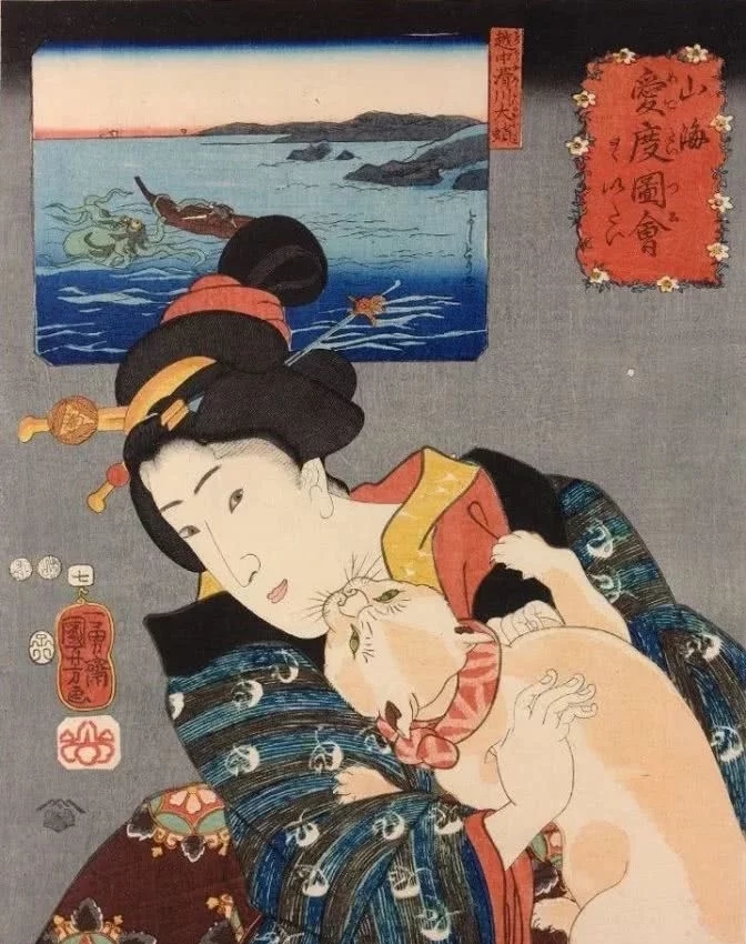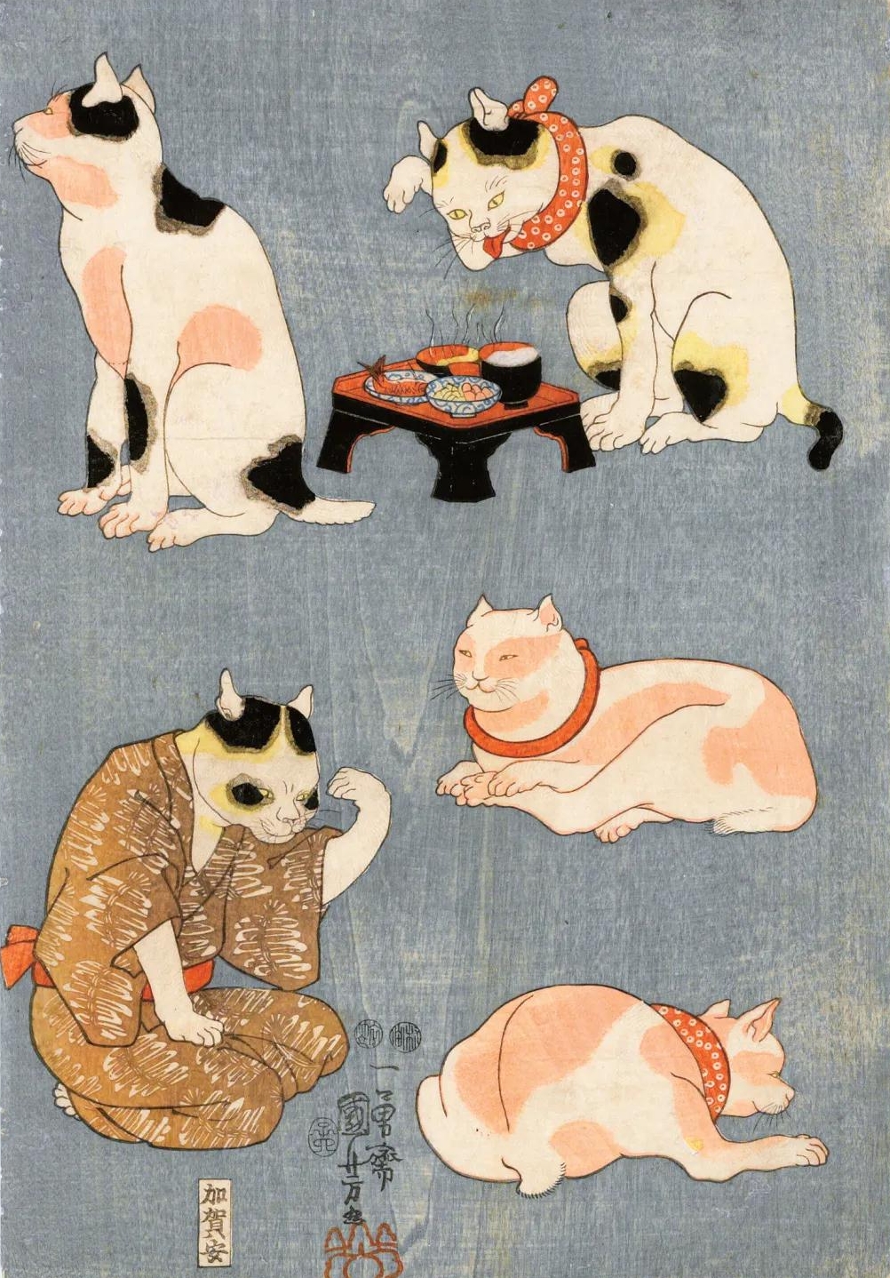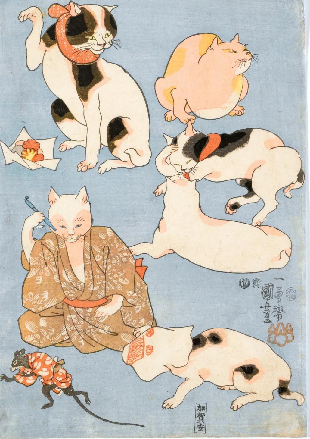 人们对于猫的痴迷可以从历史中找到线索。例如在日本江户时代,当时的人们对猫充满幻想,以猫为主的绘画占了很大比重,浮世绘中常常可以见到其身影。且人们的这种想象可谓遍及了方方面面,猫要陪女人玩、要吃饭洗澡、还要化作妖怪......
