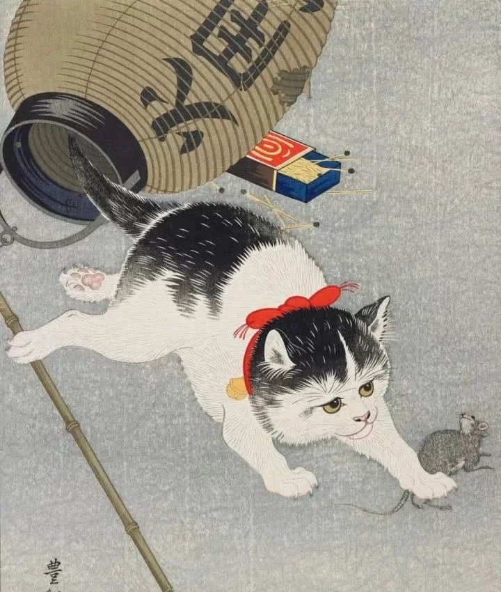 猫逐渐被拟人化之后更符合人们的“玩趣之心”,这样顽皮且充满奇思妙想的画作也因展现了当时平民百姓的日常生活而广受欢迎。在此之后,其他画家以猫为主题的绘画也更加多了起来。
