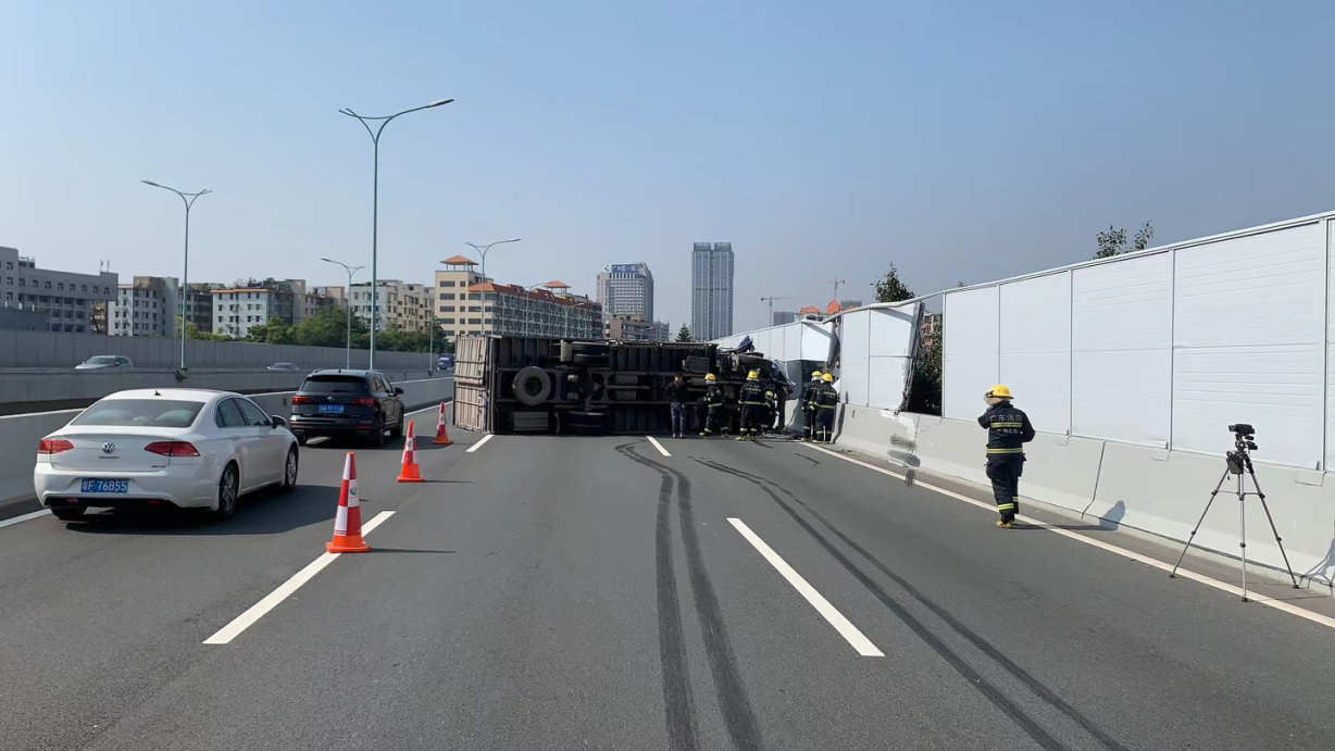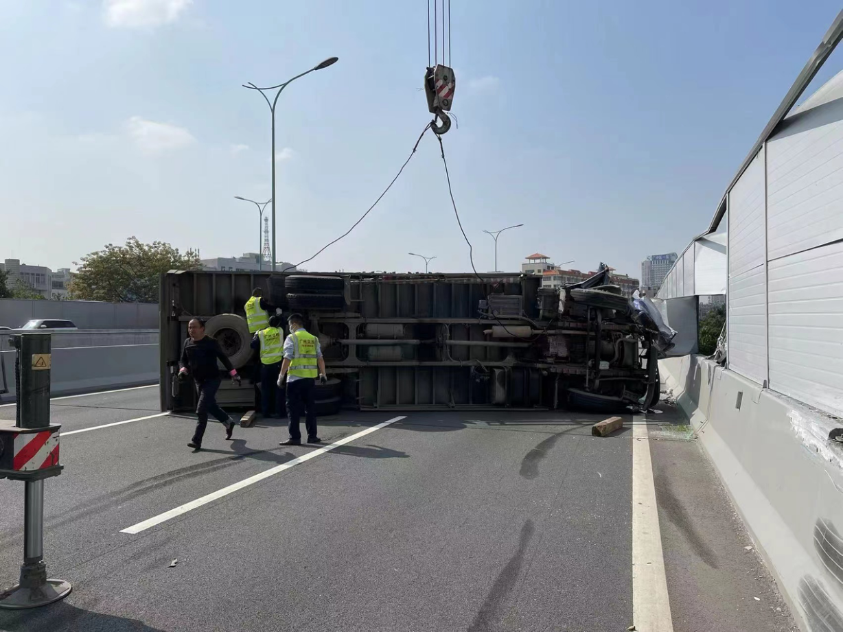 经现场了解,该车辆是由于拐弯位置速度过快造成侧翻,事故未造成人员伤亡。在救援过程中,现场各部门争分夺秒、分工有序、联合协作,从开始处理到恢复通车仅用时39分钟,为司乘人员营造了平安、顺利的出行环境。