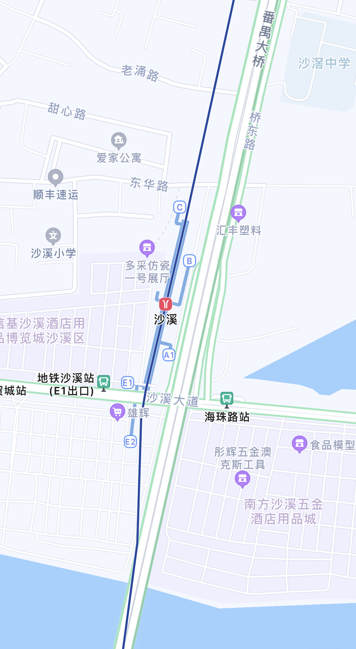 (沙溪站目前所有出入口都在番禺大桥西侧)