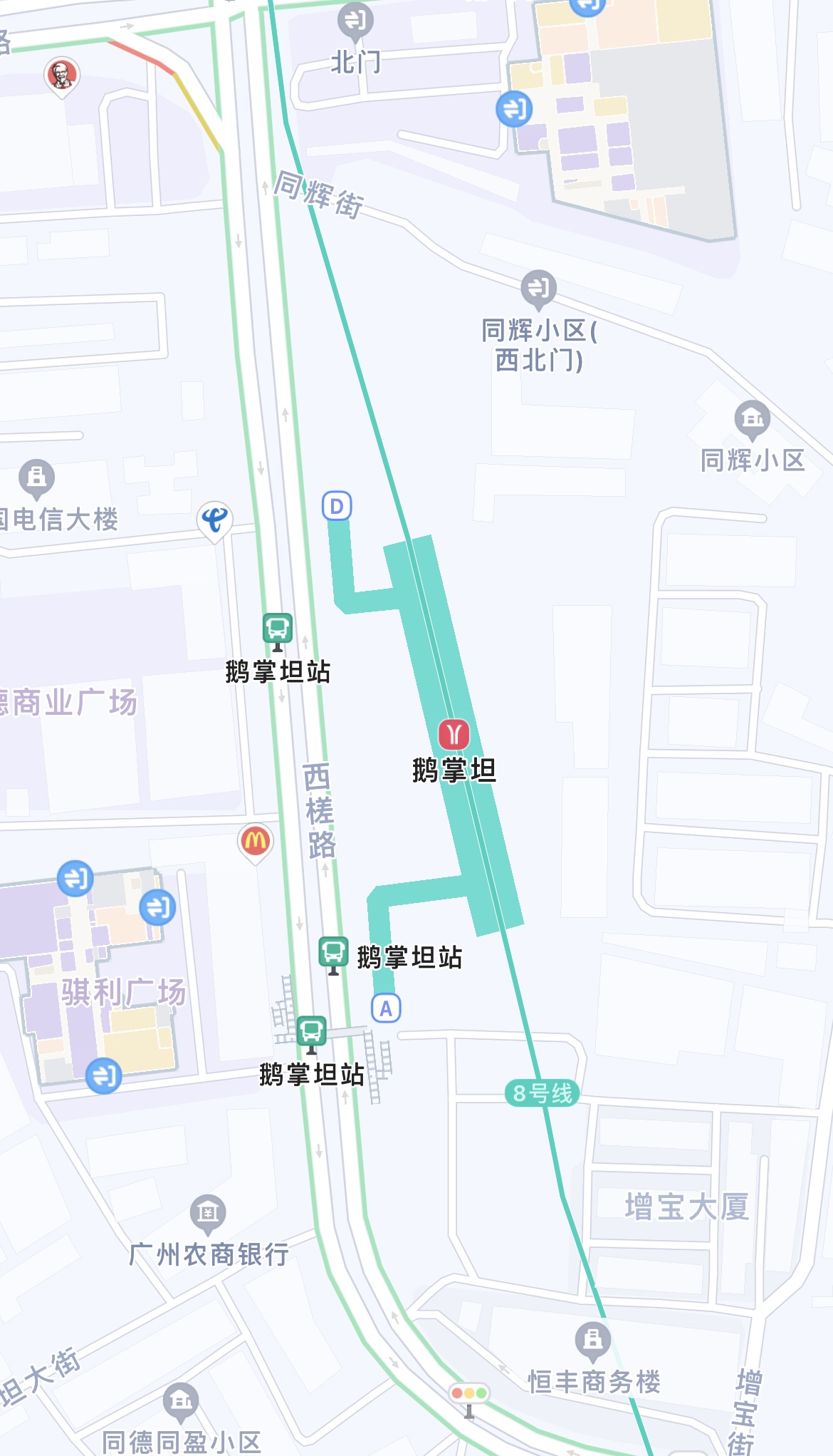 (鹅掌坦站两个出入口都在西槎路东侧)