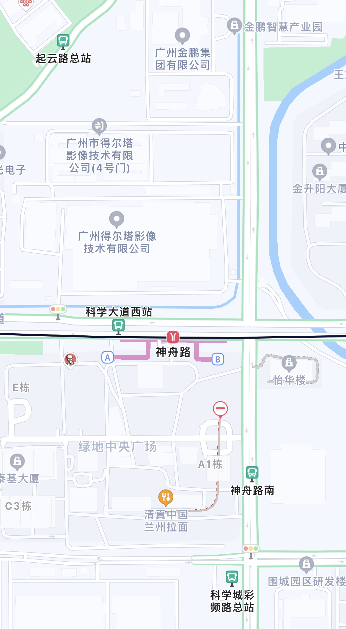 (神舟路站两个出入口都在科学大道南侧)