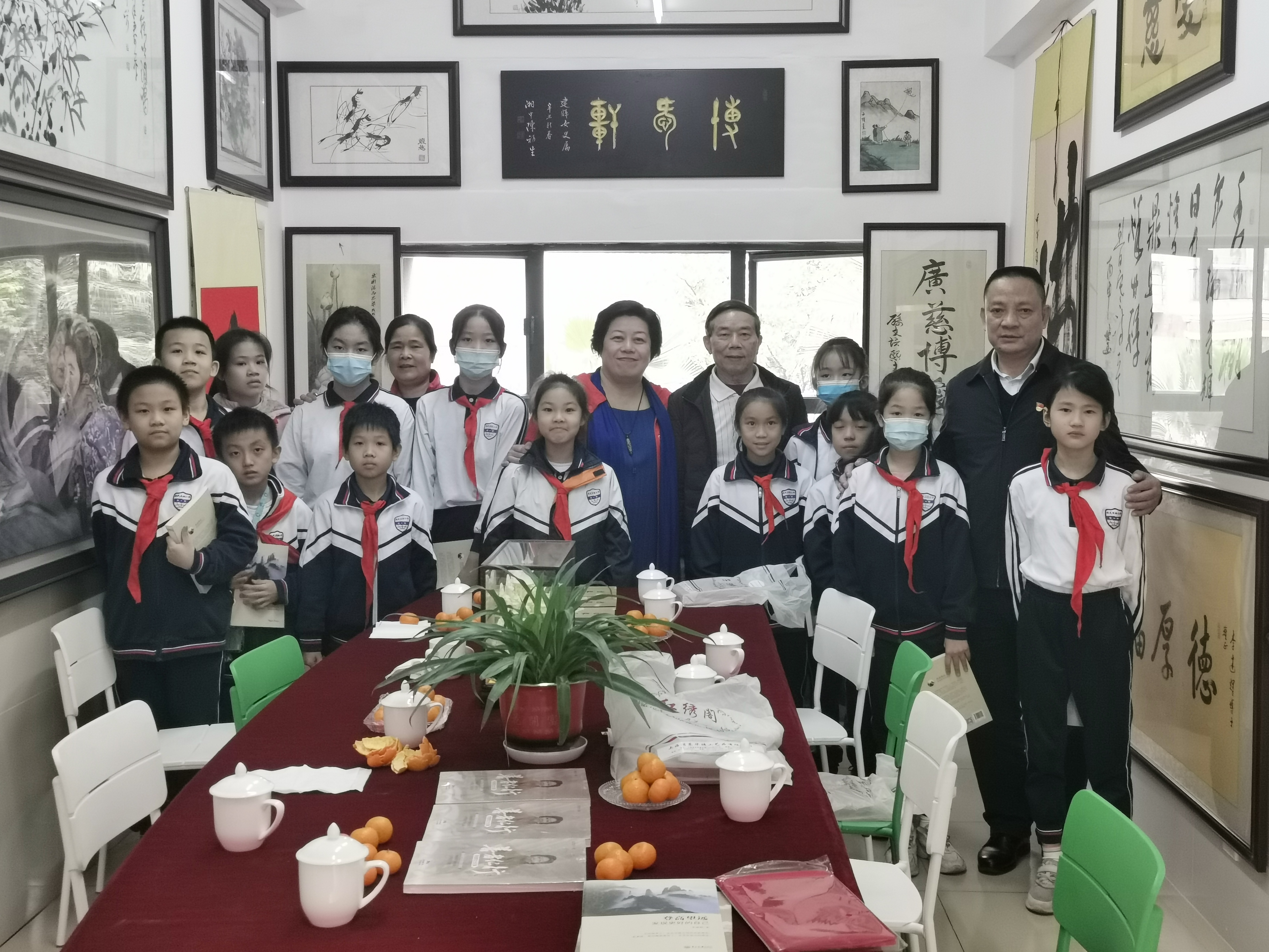 出席公益展馆交流的有广东省司法厅原副厅长曾添贵先生,广东省社会组织管理局原局长郑育琴先生,广州市社会组织管理局原局长李金庆先生,中国好人黄埔区志愿协会、平安协会会长李桂泉先生,中国最美城市美容师、全国优秀党代表陈淑萍女士。南武实验小学罗奕华校长、蒋远义副校长、郑闰芝老师及一批学生等共同参观展馆,李博士向他们介绍了新书《登高望远》第二次再版印刷、发行的有关情况。