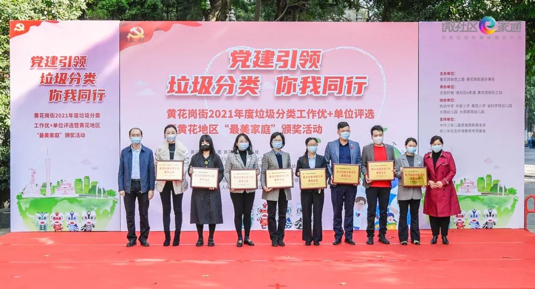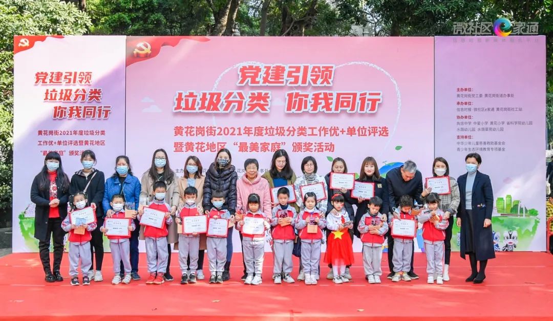 2021年11月至2022年1月期间,黄花岗街首次同时组织辖区的中星小学、黄花小学、省科学院幼儿园、水荫幼儿园和水荫翠苑幼儿园共3000余户亲子家庭共同开展垃圾分类打卡活动,共50户家庭获得“最美家庭”荣誉称号。