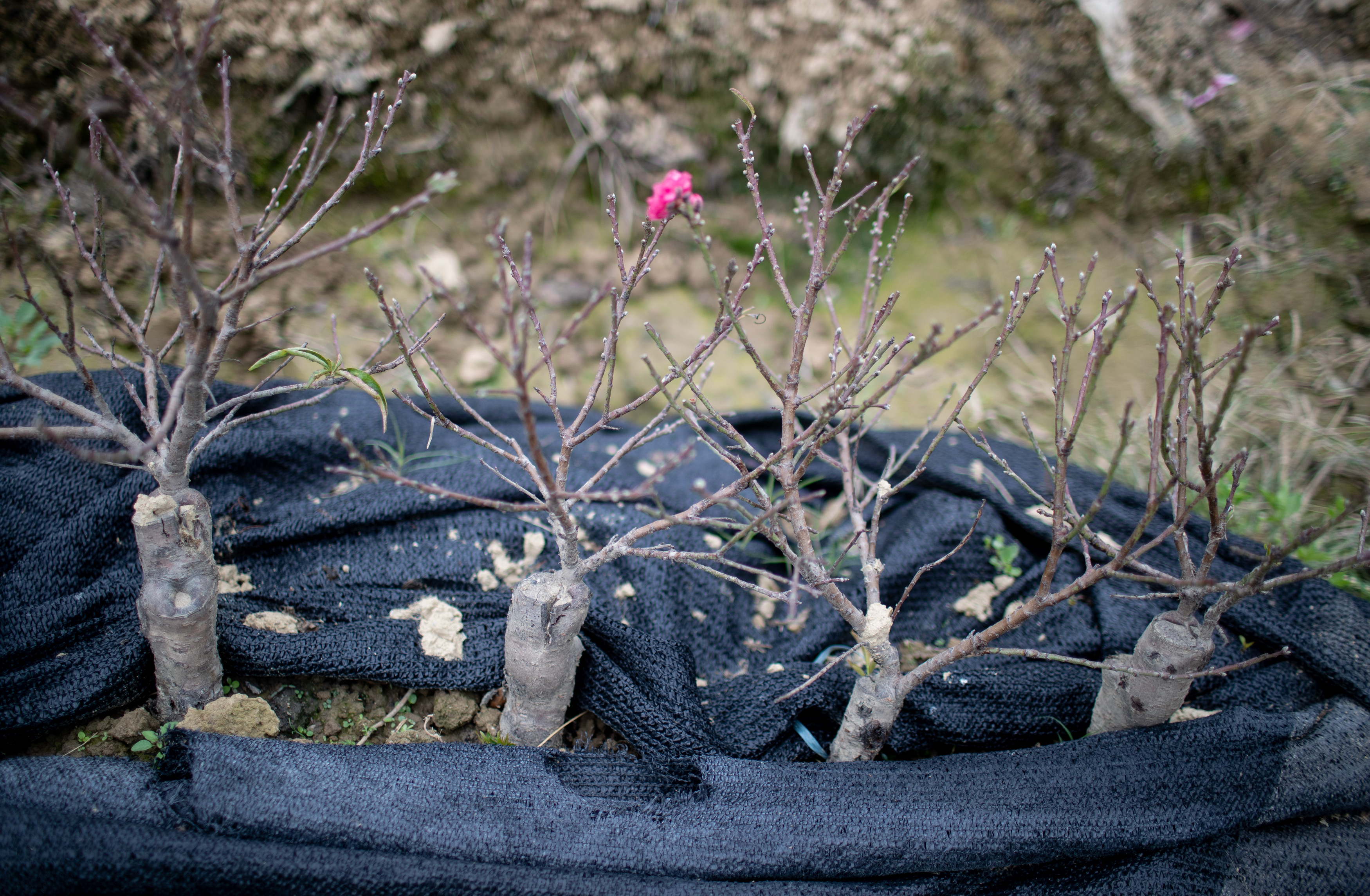 今日,记者来到石马村的桃花田,数千棵桃花苞蕾盈枝,偶有三五朵桃花悄然在枝头吐露芬芳,放眼望去一片生机勃勃。花农正在田间捆扎桃花,为销售做准备。