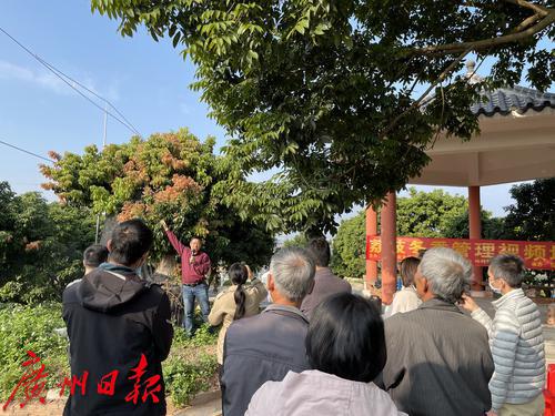活动由基岗村党总支书记陈浩潮的主持,本次培训活动采用线上线下相结合的方式,同时在多个平台进行,现场与会人员16人,线上直播平台观看次数6000多次。本次培训会邀请华南农业大学园艺学院李建国教授、增城区农业技术推广中心高级农艺师廖美敬现场就如何解决一系列荔枝冬季管理问题、促进荔枝成花,开展了一次生动、又幽默的现场技术交流活动。