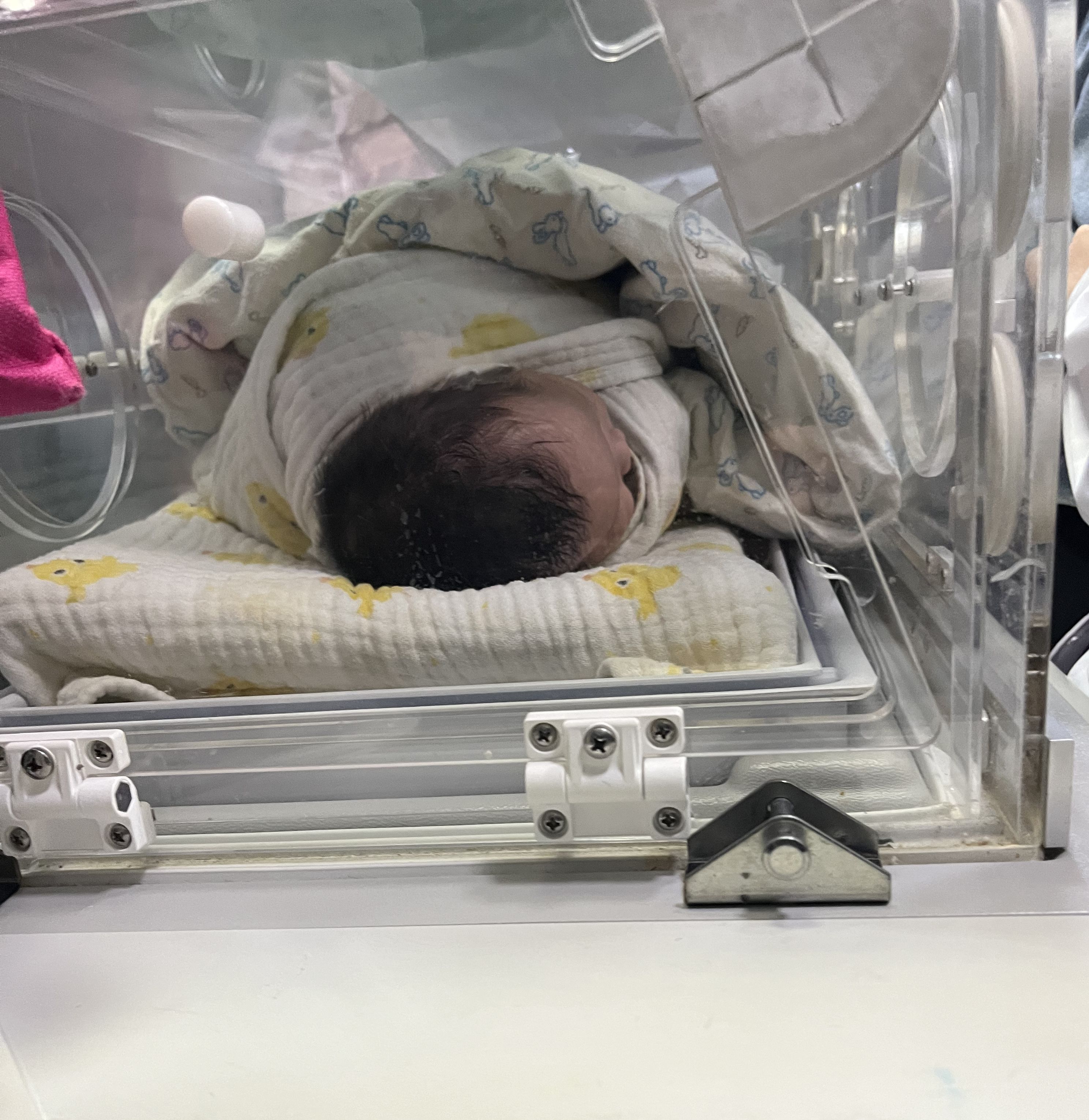刘梅的女儿体重较轻,住进了保温箱。高龄三胎妈妈:大宝二宝已长大 46岁时她决定生三胎