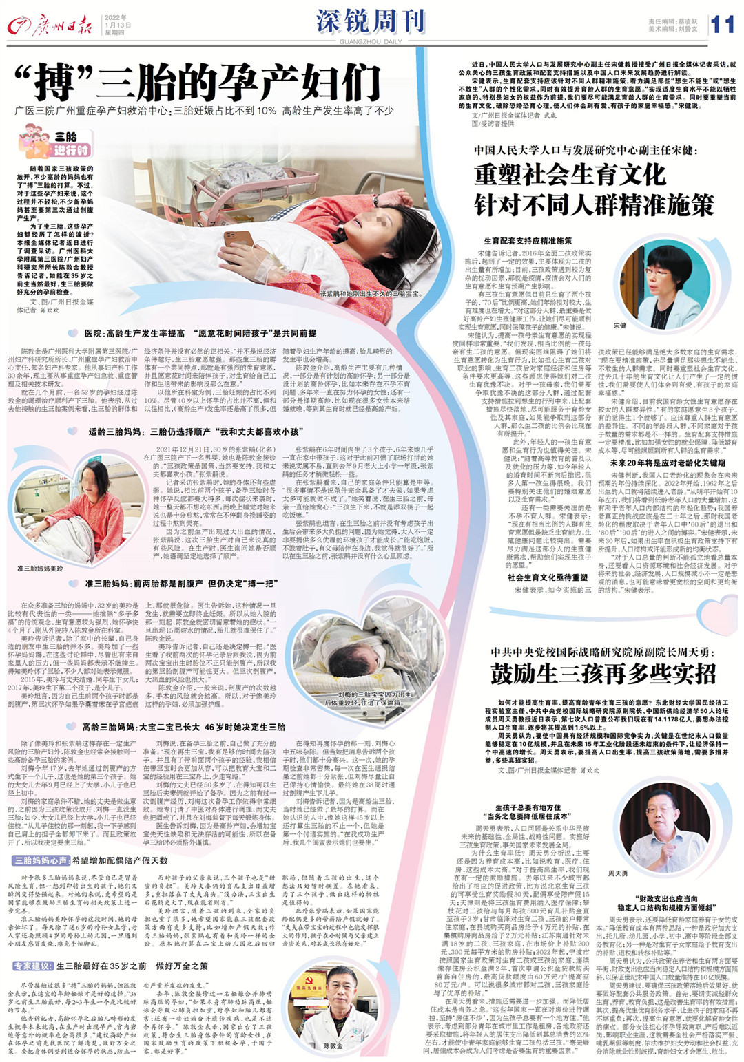 近日,中国人民大学人口与发展研究中心副主任宋健教授接受广州日报全媒体记者采访,就公众关心的三孩生育政策和配套支持措施以及中国人口未来发展趋势进行解读。