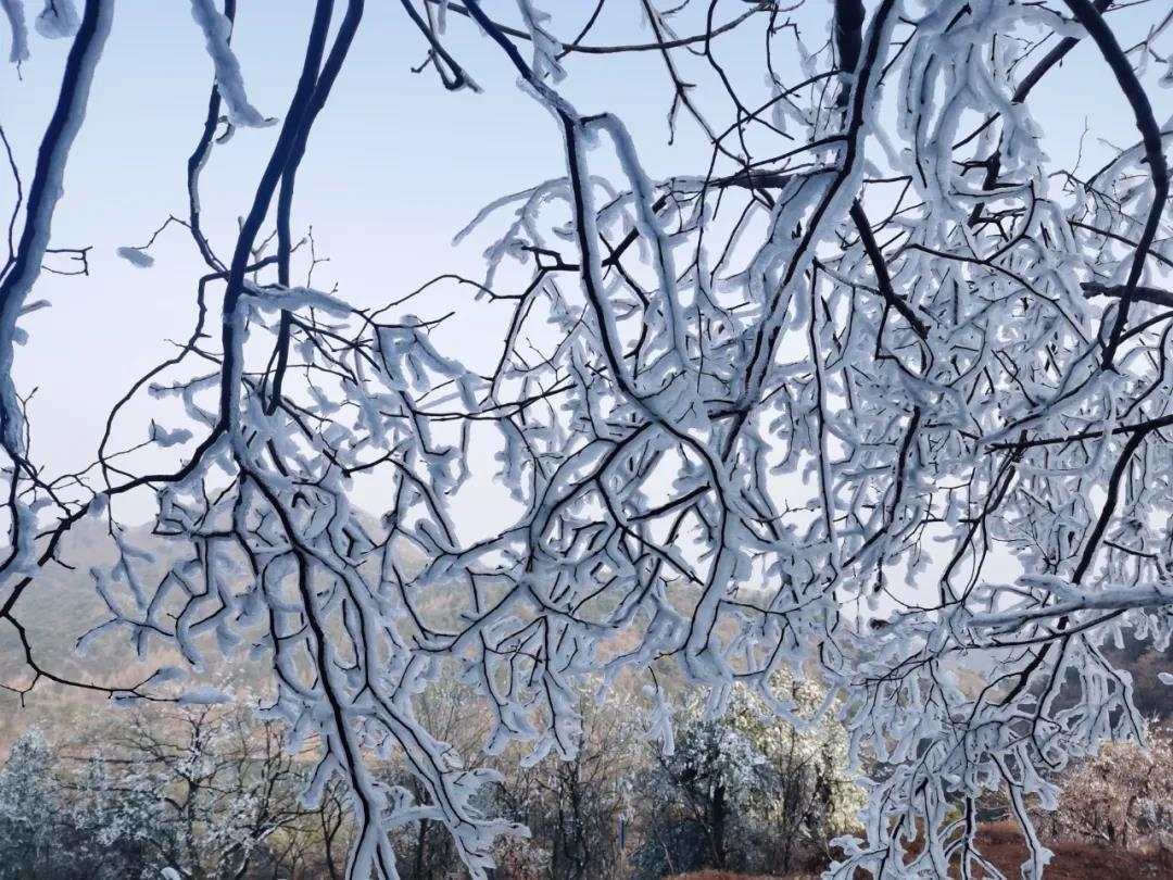 2022年1月9日,湖北省随州市大洪山出现雾凇,山间一片银装素裹。马超 摄